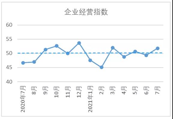 7月,企業(yè)經(jīng)營指數(shù)51.8,較6月指數(shù)上升2.46。其中,主營業(yè)務(wù)收入指數(shù)53.02,利潤總額指數(shù)50.59。7月,受上游原料價格上漲推動,紡紗行情較好。由于價格向產(chǎn)業(yè)鏈下游傳導(dǎo)不暢,織布廠經(jīng)營略差于紡紗廠,尤其利潤,受到下游擠壓。調(diào)查數(shù)據(jù)顯示,主營業(yè)務(wù)收入環(huán)比上升企業(yè)占比為55.58%,高于下降企業(yè)占比30.18個百分點;利潤總額環(huán)比上升企業(yè)占比為5.92%,高于下降企業(yè)占比5.92個百分點。