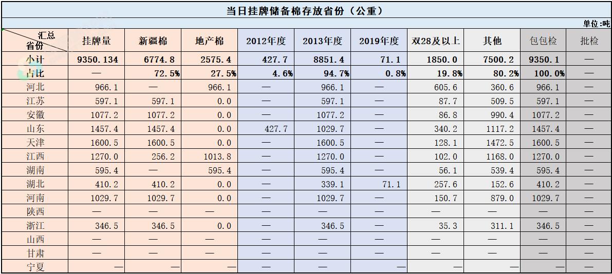 中國(guó)儲(chǔ)備棉管理有限公司定于8月27日上市銷售儲(chǔ)備棉重量9350.1341噸,共43捆,其中新疆棉6774.76噸。