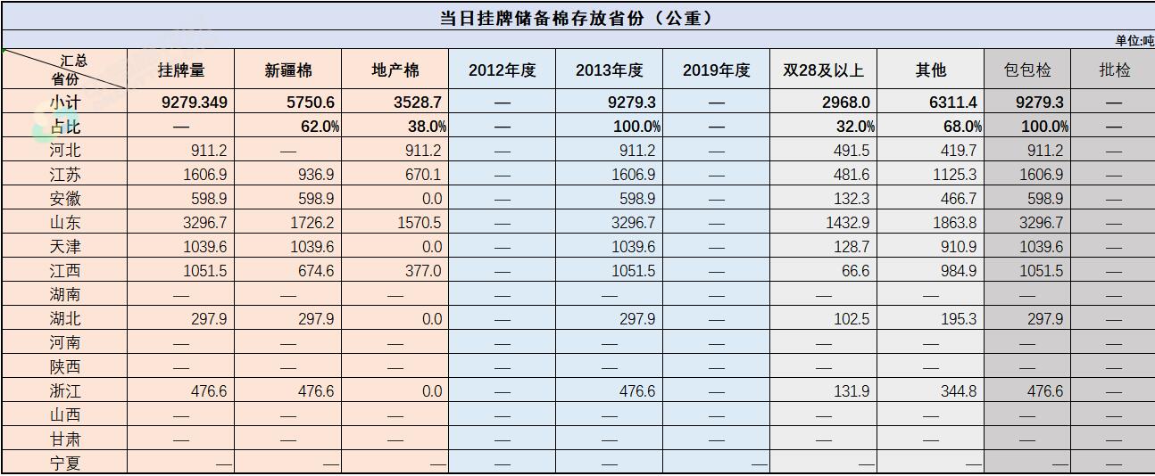 中國(guó)儲(chǔ)備棉管理有限公司定于9月2日上市銷售儲(chǔ)備棉重量9279.349噸,共46捆,其中新疆棉5750.63噸。