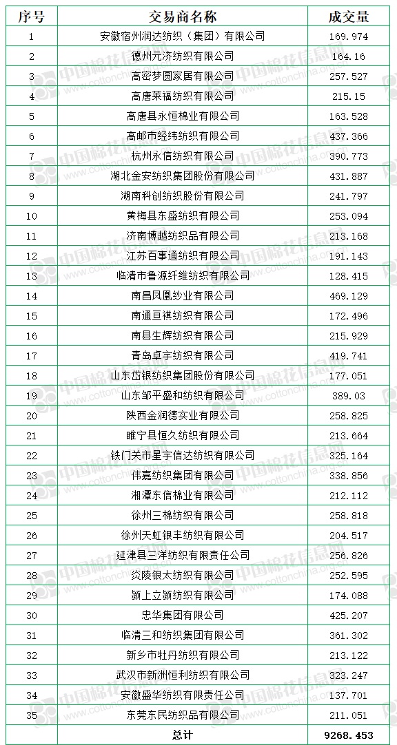 7月5日至9月1日累計(jì)成交總量406740.148噸,成交率100%。