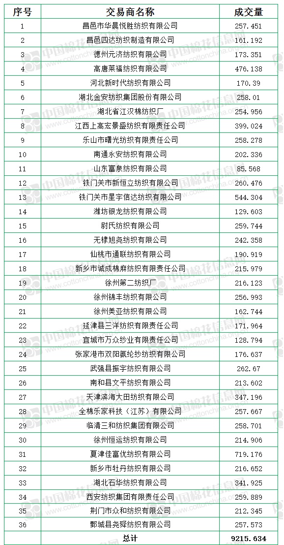 7月5日至9月3日累計成交總量425235.131噸,成交率100%。