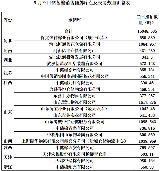 1、9月9日上市銷售儲(chǔ)備棉數(shù)據(jù)明細(xì)表(包包檢)