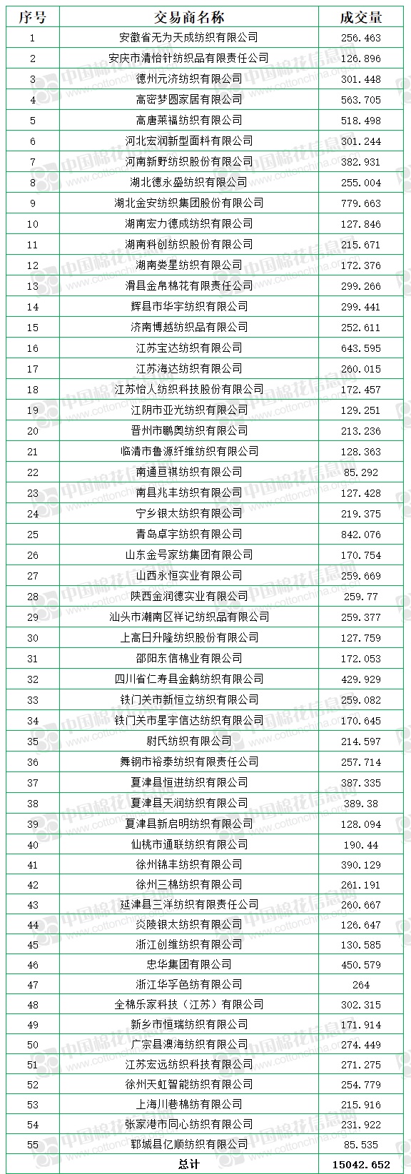 7月5日至9月13日累計成交總量515487.289噸,成交率100%。