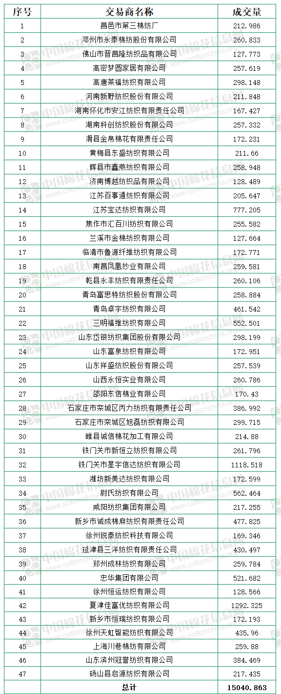 7月5日至9月16日累計成交總量560525.04噸,成交率100%。
