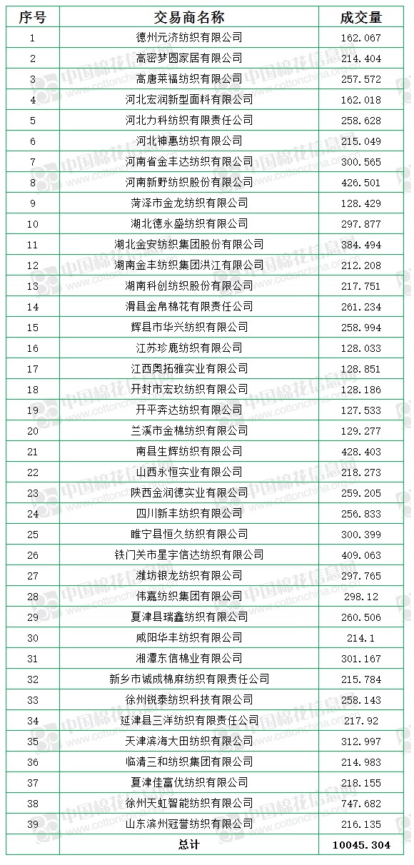 9月17日儲(chǔ)備棉輪出銷售資源10045.30噸,實(shí)際成交10045.30噸,成交率100%,成交均價(jià)17075元/噸,較16日上漲48元/噸,折3128價(jià)格18427元/噸,較16日下跌37元/噸。