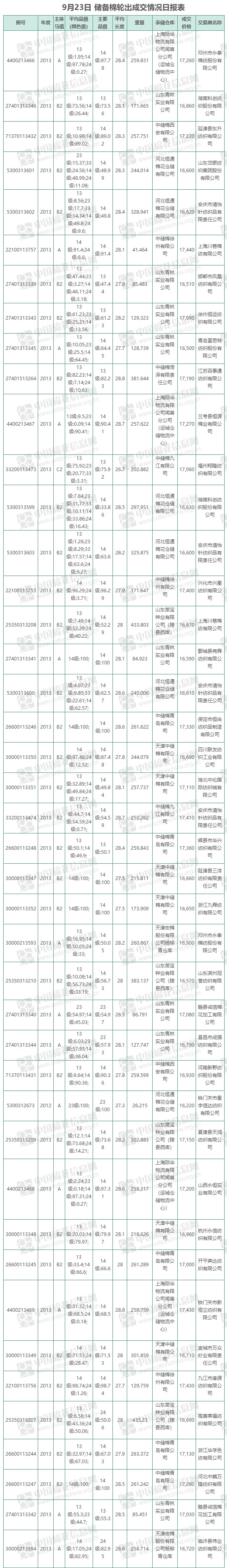 9月23日儲備棉輪出銷售資源9995.684噸,實際成交9995.684噸,成交率100%,成交均價16940元/噸,較22日下跌114元/噸,折3128價格18371元/噸,較22日下跌37元/噸?!?/p>