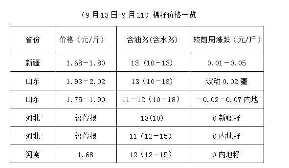 上周(9月13日-9月21日),因中秋放假三天,棉市行情出現(xiàn)波動(dòng),部分地區(qū)在節(jié)日期間籽棉收購(gòu)價(jià)格有所下調(diào),新棉籽雖少量上市,因質(zhì)量參差不齊,價(jià)格也各不相同。目前,油棉廠新入市收購(gòu)者不多,個(gè)別廠家仍在等待新棉籽集中上量后才能行動(dòng)。棉副產(chǎn)品震蕩難穩(wěn),油棉廠根據(jù)當(dāng)?shù)毓┣蟋F(xiàn)狀,結(jié)合外圍豆油、豆粕走勢(shì)銷售,當(dāng)前因開工率有限,棉副仍多處持價(jià)狀態(tài),但下游廠商采購(gòu)意愿不高,多剛需進(jìn)貨,多方仍在密切關(guān)注新棉籽集中上市后行情走勢(shì)。