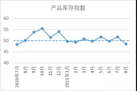 8月,產(chǎn)品庫存指數(shù)48.48,較7月下降3.25。當(dāng)月,市場交投氛圍略有降溫,尤其織造企業(yè)出貨遲緩,庫存開始積累,部分地區(qū)企業(yè)已采取限產(chǎn)措施。整體看,紗布庫存均較7月增加。從調(diào)查數(shù)據(jù)看,紗庫存量環(huán)比上升的企業(yè)占比為39.97%,高于下降企業(yè)占比8.3個(gè)百分點(diǎn),布庫存量環(huán)比下降的企業(yè)占比為53.32%,高于上升企業(yè)占比25.45個(gè)百分點(diǎn)。