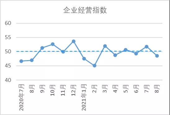 8月,企業(yè)經(jīng)營指數(shù)48.5,較7月下降3.3。其中,主營業(yè)務(wù)收入指數(shù)49.37,環(huán)比下降3.65;利潤總額指數(shù)47.64,環(huán)比下降2.95。8月,棉價(jià)仍處高位,棉紗價(jià)格雖有跟漲,但下游客戶認(rèn)可度不高,疊加市場交投走淡,紡紗廠利潤空間被壓縮??棌S方面,坯布價(jià)格傳導(dǎo)遲滯,價(jià)格上漲困難,外單船運(yùn)價(jià)格依然較高,企業(yè)利潤明顯下降。調(diào)查數(shù)據(jù)顯示,主營業(yè)務(wù)收入環(huán)比下降的企業(yè)占比為43.18%,高于升上企業(yè)占比6.33個(gè)百分點(diǎn);利潤總額環(huán)比下降的企業(yè)占比為51.17%,高于上升企業(yè)占比23.64個(gè)百分點(diǎn)。