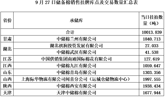 1、9月27日上市銷售儲(chǔ)備棉數(shù)據(jù)明細(xì)表(包包檢)