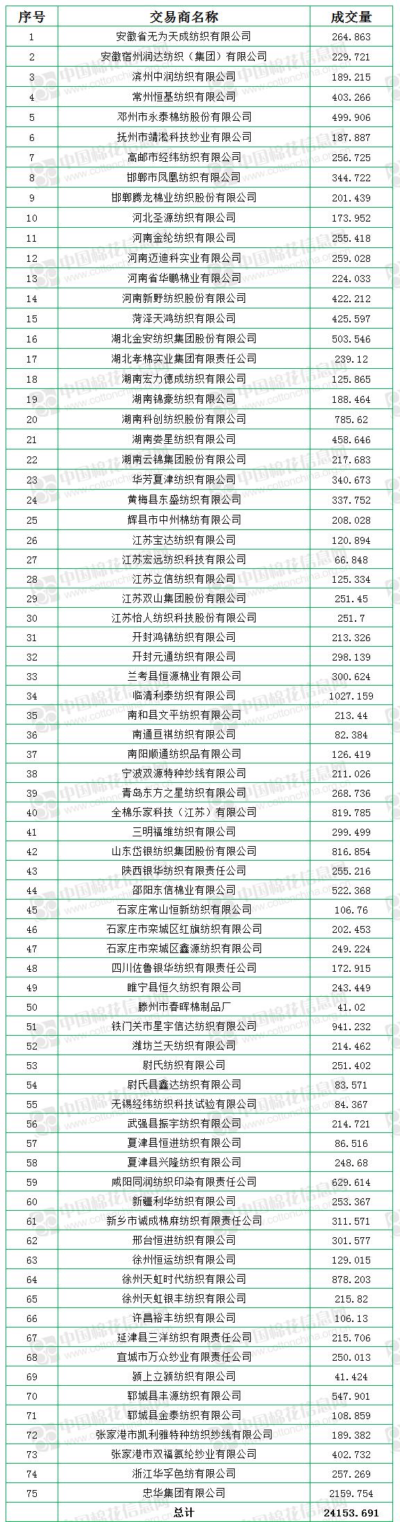 10月8日至10月12日累計成交總量64429.074噸,成交率97.89%。