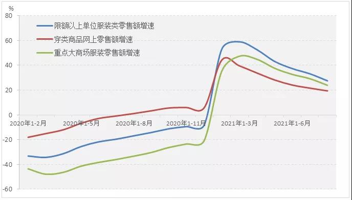 8月服裝內(nèi)銷市場依然保持恢復(fù)性增長態(tài)勢,但內(nèi)銷增速放緩趨勢增強。局部地區(qū)發(fā)生疫情和汛情是短期服裝內(nèi)銷增速大幅波動的主要原因。另外部分行業(yè)的政策調(diào)整導(dǎo)致主要大城市青年失業(yè)率提升進一步抑制夏裝消費,及上年同期基數(shù)轉(zhuǎn)為正增長等多重因素,均對服裝內(nèi)銷增速產(chǎn)生一定影響。