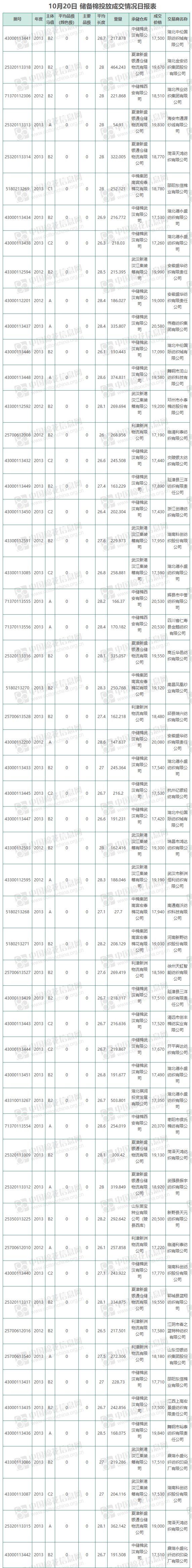 10月8日至10月20日累計成交總量168839.494噸,成交率74.68%。
