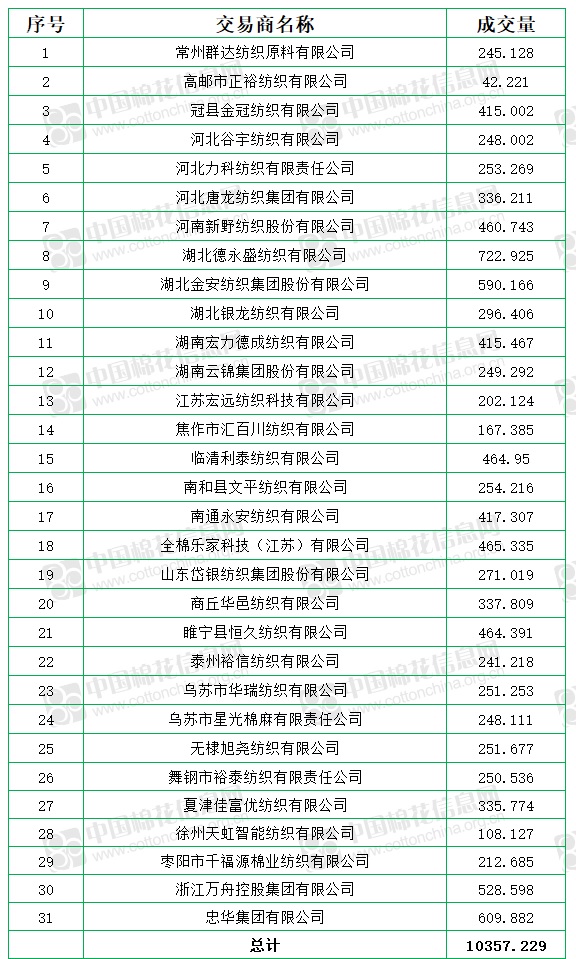 10月8日至10月21日累計成交總量179196.723噸,成交率69.96%。