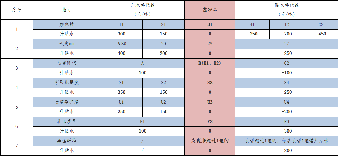 經(jīng)研究決定,現(xiàn)對棉花期貨替代交割品升貼水調(diào)整公告如下(見下表),自2022/23年度生產(chǎn)的棉花開始實(shí)施。