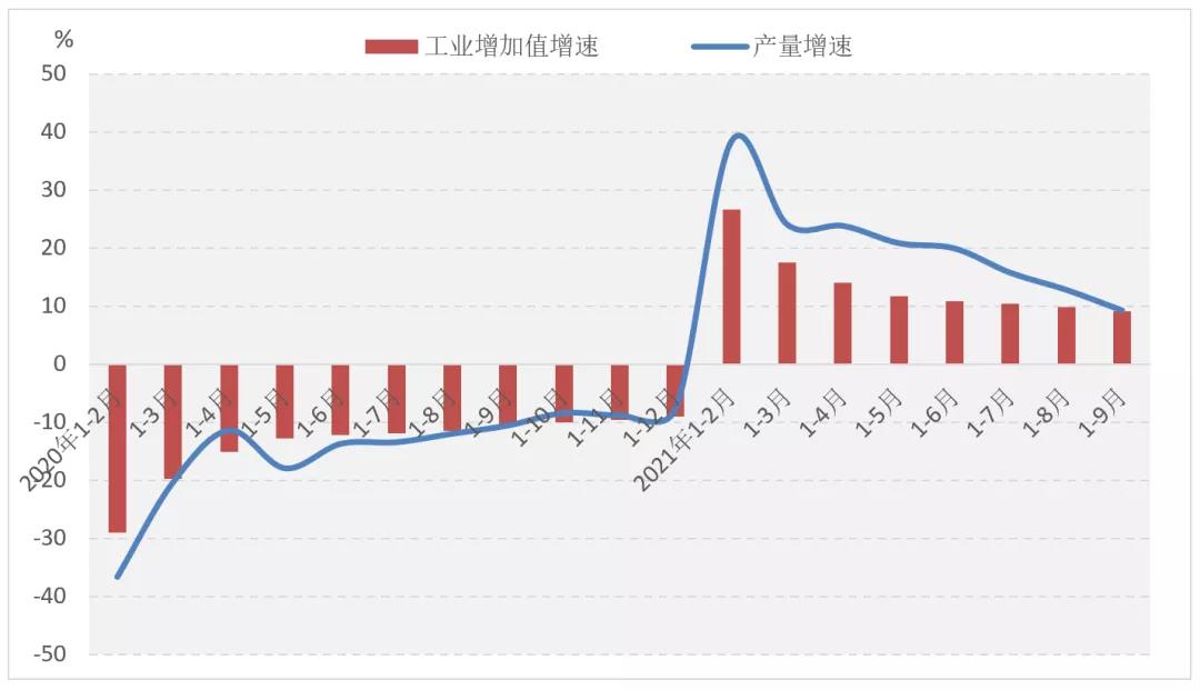 圖1 2021年1-9月服裝行業(yè)生產(chǎn)增速情況
