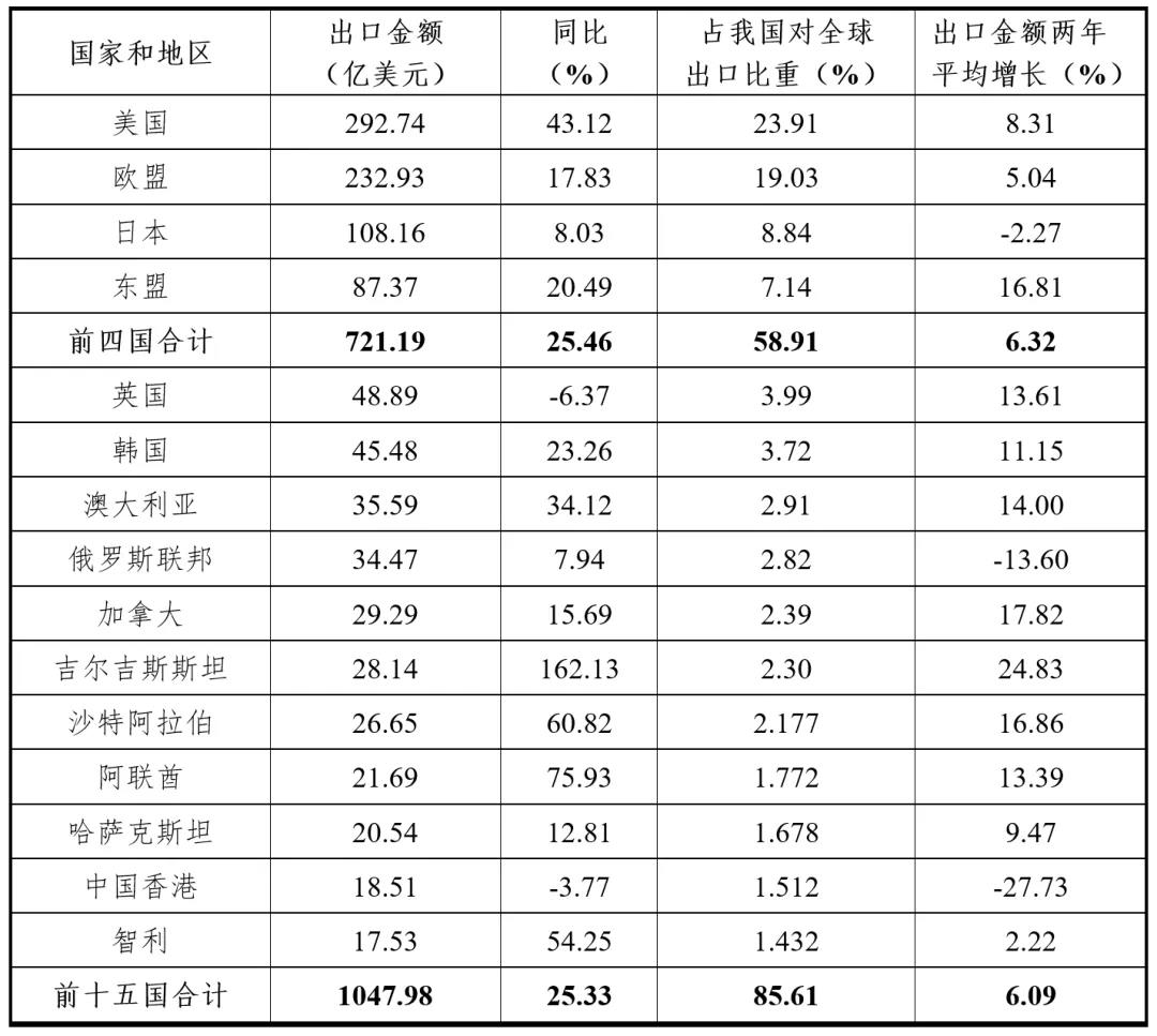 表1 2021年1-9月我國(guó)對(duì)部分國(guó)家和地區(qū)出口服裝情況