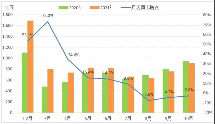 1.2021年1-10月服裝行業(yè)經(jīng)濟(jì)運行情況