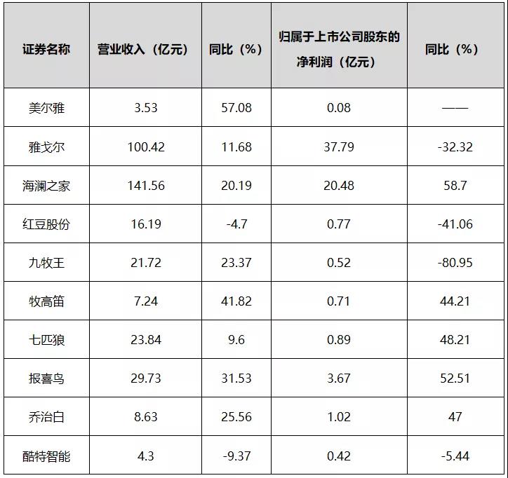 10家男裝上市企業(yè)2021年前3季度營業(yè)收入357.16億元,凈利潤66.35億元。其中海瀾之家、雅戈爾營收超百億,紅豆股份、九牧王、七匹狼、報喜鳥營收位于15-30億元區(qū)間,美爾雅、牧高笛、喬治白、酷特智能營收在10億元以內(nèi);從企業(yè)層面看,海瀾之家、牧高笛、七匹狼、報喜鳥、喬治白5家企業(yè)實現(xiàn)營收凈利潤雙增,紅豆股份、酷特智能的營收凈利潤雙降。