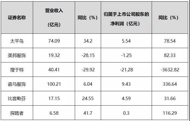 6家運動休閑服飾上市企業(yè)2021年前3季度營業(yè)收入為257.76億元,凈利潤-2.67億元。從營收上看,森馬服飾前3季度營收超100億元,緊隨其后是太平鳥74.09億元,搜于特40.41億元,美邦服飾、比音勒芬營收在20億元以內(nèi),探路者6.58億元;森馬服飾、太平鳥、比音勒芬、探路者的營收凈利潤實現(xiàn)了雙增,搜于特則受資金短缺影響,品牌服飾業(yè)務(wù)2021年以來主要以銷售庫存產(chǎn)品為主,嚴(yán)重影響銷售業(yè)績。