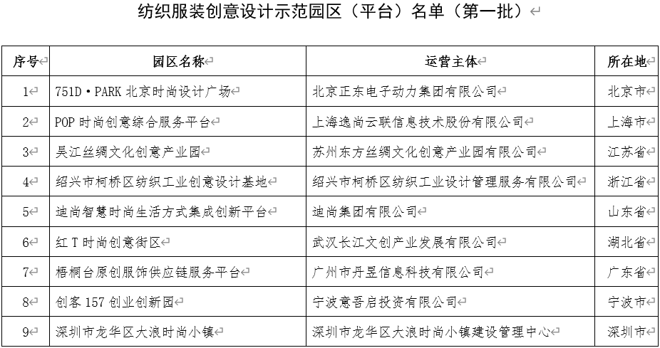 附件1:紡織服裝創(chuàng)意設(shè)計示范園區(qū)(平臺)名單(第一批)