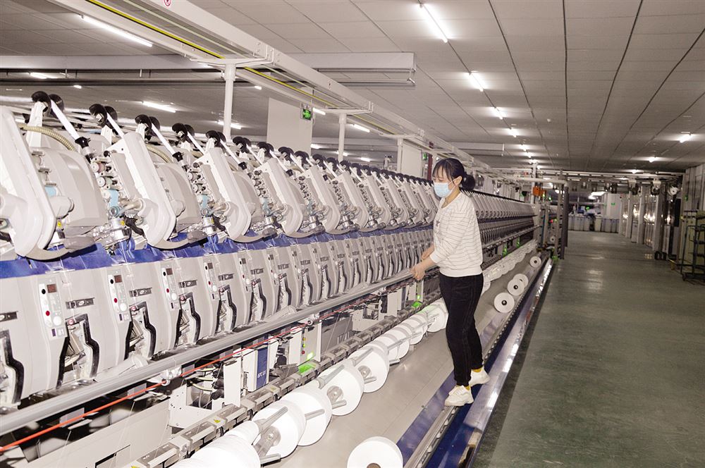 “這20套從日本進口的渦流紡紗設備,具有自動化程度高、用工省的特點,與傳統(tǒng)環(huán)錠紡設備相比,人工需求量至少可減少2/3。整個生產流程對工人的技能要求不高,普通員工通過簡單的培訓就能勝任?!宾硒P織造負責人說,這些渦流紡紗機是目前世界一流的先進紡紗設備,其紡紗速度是普通紡紗機器的20倍,大大提高生產效率。
