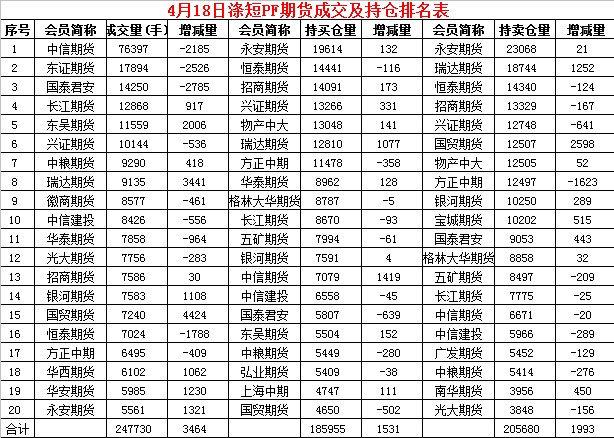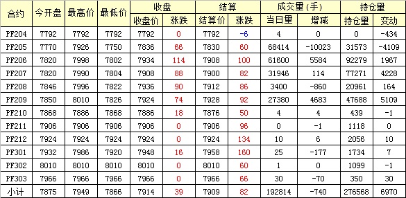 主力PF205合約當(dāng)日交易走勢(shì)