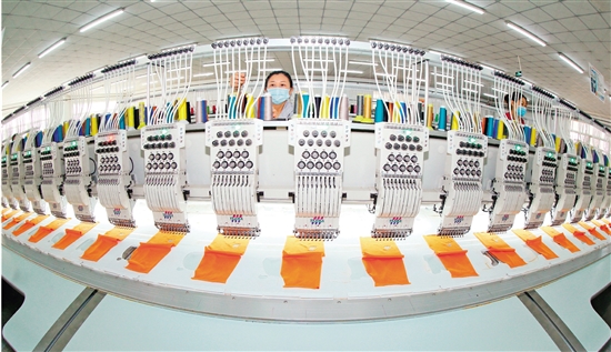 4月27日,青島市即墨區(qū)一家公司的繡花工人在生產(chǎn)出口到海外市場(chǎng)的服裝產(chǎn)品。今年以來(lái),山東省青島市即墨區(qū)的紡織服裝生產(chǎn)企業(yè)訂單充足,產(chǎn)能飽滿(mǎn),工人們加緊趕制海外訂單,滿(mǎn)足國(guó)際市場(chǎng)需求。據(jù)悉,即墨區(qū)擁有紡織服裝企業(yè)3000余家,是集研發(fā)、設(shè)計(jì)、生產(chǎn)、出口于一體的區(qū)域性紡織服裝產(chǎn)業(yè)基地。