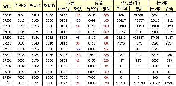 主力PF209合約當(dāng)日交易走勢