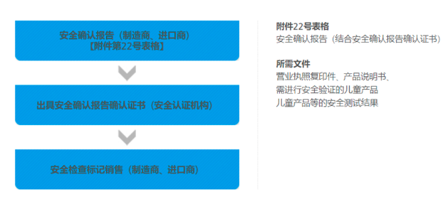 A.兒童紡織服裝制造商或進(jìn)口商在發(fā)貨或清關(guān)前,須接受指定檢測機(jī)構(gòu)針對每種產(chǎn)品型號的安全性檢查,確認(rèn)符合兒童產(chǎn)品的安全標(biāo)準(zhǔn)后,向安全認(rèn)證機(jī)構(gòu)報(bào)告。安全檢查程序如下。