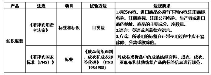 紡織服裝不屬于菲律賓PS和ICC強(qiáng)制認(rèn)證產(chǎn)品范圍,無須在通關(guān)前獲得相關(guān)認(rèn)證并貼附標(biāo)志。
