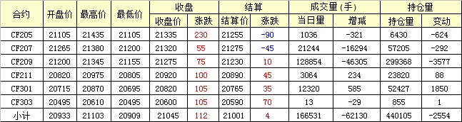 主力CF209合約當日交易走勢圖