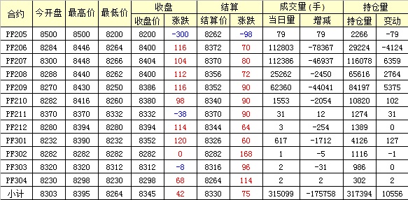 主力PF209合約當(dāng)日交易走勢