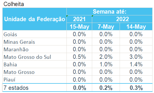 據(jù)巴西農(nóng)業(yè)部下屬的國(guó)家商品供應(yīng)公司CONAB,截至5月14日,巴西棉花收割率為0.3%,上周為0.2%,去年同期為0%。