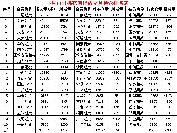 5月17日,隔夜鄭棉高開下試后回穩(wěn),今日早盤在多頭買盤推動下上沖,此后區(qū)間震蕩,日線形成小陽線。日內(nèi)成交量溫和放大,持倉量增加。