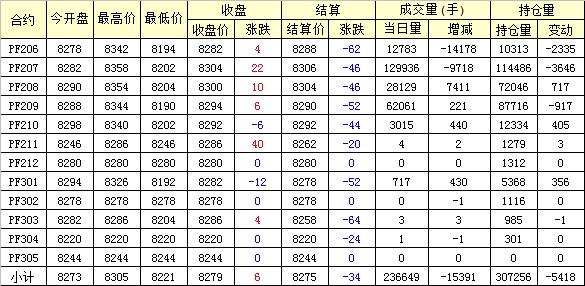 主力PF209合約當日交易走勢
