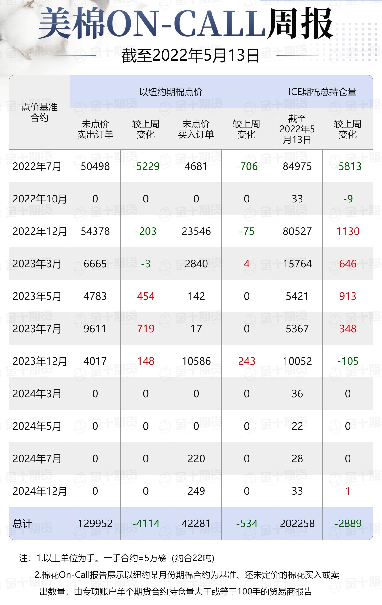 ②ICE期棉2207合約上賣方未點價合約為50498手,較此前一周減少5229手;
