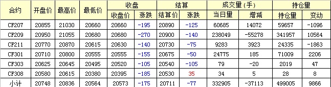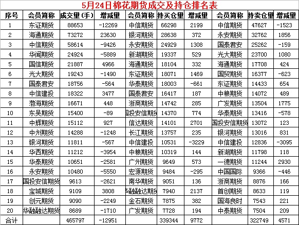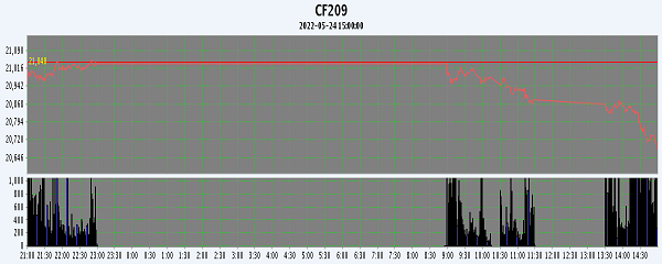 5月24日,隔夜鄭棉平開反彈,今日早盤在平倉盤打壓下走低,午后空頭賣盤放量打壓期價下滑,收盤于日低,日線形成陰線。日內(nèi)成交量萎縮,持倉量增加。