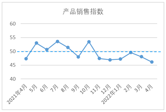 4月,企業(yè)經(jīng)營(yíng)指數(shù)45.74,較3月下降4.17,位于枯榮線下方。4月,受到疫情及俄烏戰(zhàn)爭(zhēng)等因素持續(xù)影響,原料端價(jià)格持續(xù)高位運(yùn)行,上下游價(jià)格傳導(dǎo)明顯不暢,產(chǎn)業(yè)鏈供應(yīng)鏈存在一些堵點(diǎn)。同時(shí)交通物流受阻,運(yùn)輸費(fèi)用增加,企業(yè)生產(chǎn)經(jīng)營(yíng)面臨較大壓力。當(dāng)月,主營(yíng)業(yè)務(wù)收入指數(shù)45.67,較3月下降5.3;利潤(rùn)總額指數(shù)45.81,較3月下降3.04。