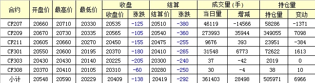 主力CF209合約當(dāng)日交易走勢圖