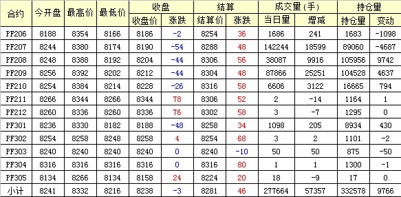 主力PF209合約當(dāng)日交易走勢(shì)