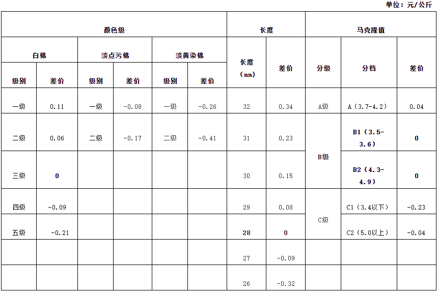 根據(jù)《中國棉花協(xié)會籽棉收購結(jié)算差價參考表(新疆細(xì)絨棉)管理辦法》規(guī)定,依據(jù)中國棉花協(xié)會發(fā)布的2022年6月《鋸齒加工細(xì)絨棉質(zhì)量差價表》和中國棉花預(yù)警系統(tǒng)2021年9月至2022年1月新疆籽棉收購平均衣分率數(shù)據(jù),折算得出籽棉收購差價,現(xiàn)正式發(fā)布2022年6月《籽棉收購結(jié)算差價參考表(新疆細(xì)絨棉)》(單位:元/公斤),為新疆地區(qū)籽棉收購工作提供參考。