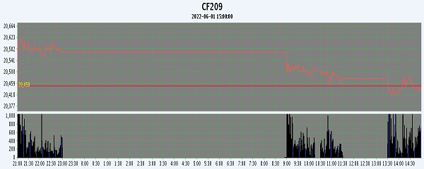 6月1日,周二紐約棉花期貨收跌,隔夜鄭棉低開下滑,今日早盤受外棉下跌影響,在多頭平倉與空頭賣盤壓制下走低,午后區(qū)間震蕩,日線形成陰線。日內(nèi)成交量萎縮,持倉量減少。從外圍市場運(yùn)行情況來看,盤中受美股和谷物市場走低影響,期棉承壓下挫。此外,周內(nèi)得州仍有降水預(yù)報(bào),從近期美國新棉種植進(jìn)度及苗情來看,整體情況良好,天氣升水或有所減弱。