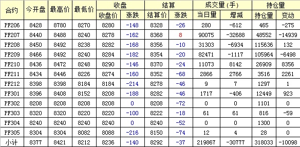 主力PF209合約當(dāng)日交易走勢