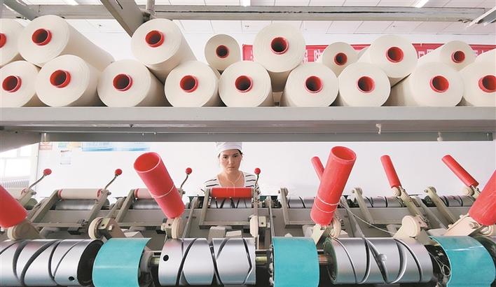 6月5日,新疆極限天霖紡織有限公司工人在整理棉紗。鐵門關(guān)經(jīng)濟技術(shù)開發(fā)區(qū)強化為企服務(wù)、落實惠企政策,今年前5個月,該公司創(chuàng)新營銷,逆勢而上,生產(chǎn)銷售優(yōu)質(zhì)毛巾600萬條、棉紗850噸,實現(xiàn)產(chǎn)值4400萬元。
