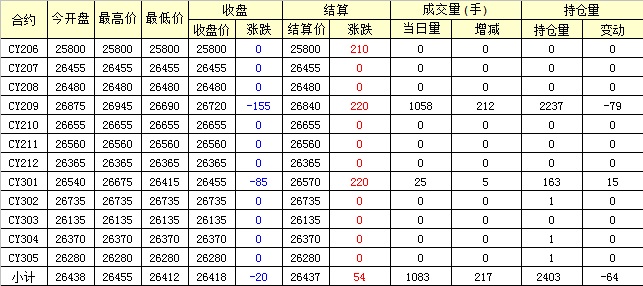 主力CY209合約當(dāng)日交易走勢(shì)
