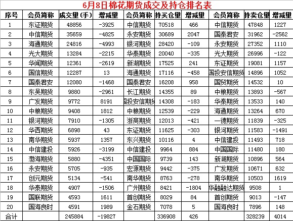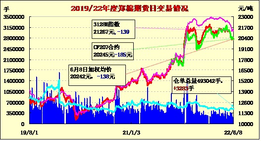 6月8日,隔夜鄭棉平開反彈,今日早盤區(qū)間震蕩,午后在空頭賣盤壓制下回落,日線形成陽線星。日內(nèi)成交量萎縮,持倉量變化不大。