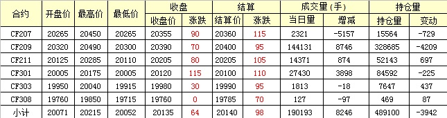 主力CF209合約當日交易走勢圖