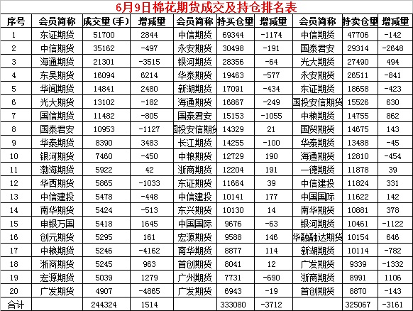 6月9日,隔夜鄭棉平開上試后回落,今日早盤因外棉上漲帶動上沖,隨后區(qū)間震蕩,午后在平倉盤壓制下回落,日線形成小陽線。日內(nèi)成交量溫和放大,持倉量減少。