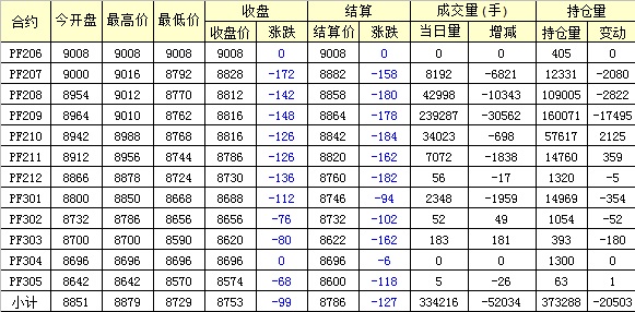 主力PF209合約當(dāng)日交易走勢
